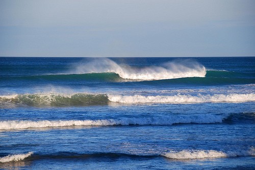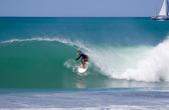 Quando as ondulações entram rolam boas ondas na maioria dos picos de surf ao longo da baía desde a Ilha Matakana à Motu River mouth.